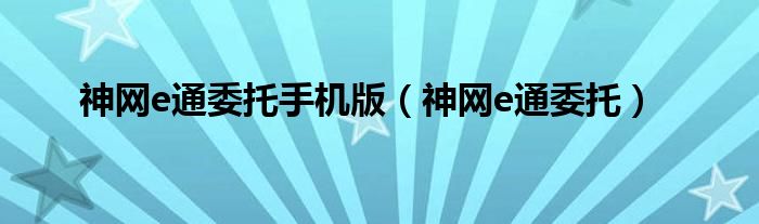 大家好,小问来为大家解答以上问题。神网e通委托手机版,神网e通委托这个很多人还不知道,现在让我们一起来看看吧!