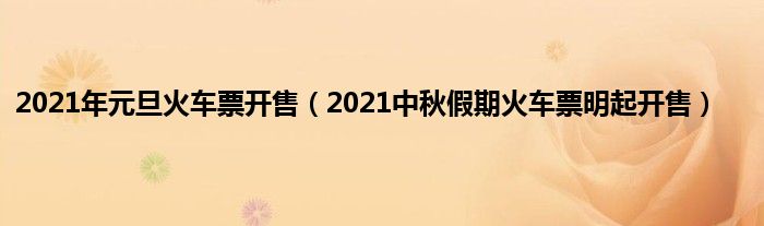 本文,2021年元旦火车票开售,2021中秋假期火车票明起开售到此就分享完毕,希望对大家有所帮助。
