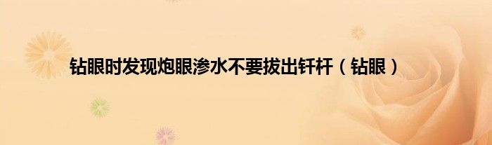 大家好,小问来为大家解答以上问题。钻眼时发现炮眼渗水不要拔出钎杆,钻眼这个很多人还不知道,现在让我们一起来看看吧!