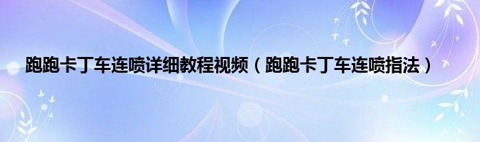 以上就是【跑跑卡丁车连喷详细教程视频,跑跑卡丁车连喷指法】相关内容。