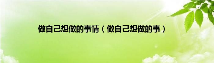 以上就是【做自己想做的事情,做自己想做的事】相关内容。