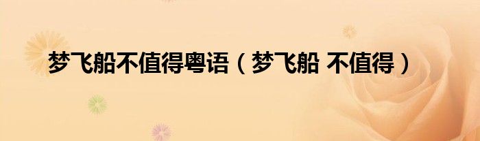 大家好,小问来为大家解答以上问题。梦飞船不值得粤语,梦飞船 不值得这个很多人还不知道,现在让我们一起来看看吧!