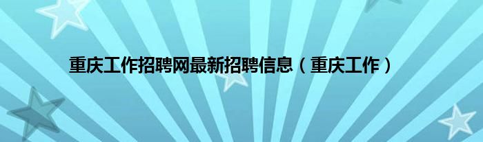 重庆工作招聘网最新招聘信息(重庆工作)