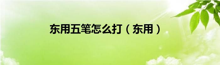 大家好,小问来为大家解答以上问题。东用五笔怎么打,东用这个很多人还不知道,现在让我们一起来看看吧!