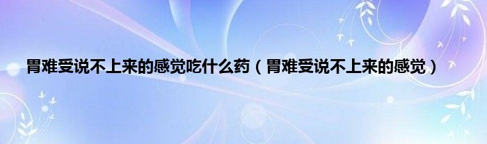 大家好,小问来为大家解答以上问题。胃难受说不上来的感觉吃什么药,胃难受说不上来的感觉这个很多人还不知道,现在让我们一起来看看吧!