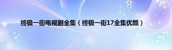 大家好,小问来为大家解答以上问题。终极一街电视剧全集,终极一街17全集优酷这个很多人还不知道,现在让我们一起来看看吧!