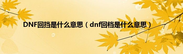 以上就是【DNF回挡是什么意思,dnf回档是什么意思】相关内容。