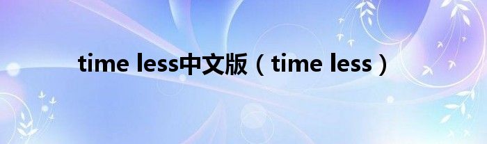 大家好,小问来为大家解答以上问题。time less中文版,time less这个很多人还不知道,现在让我们一起来看看吧!