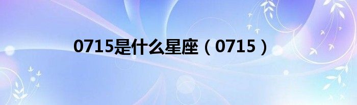 大家好,小问来为大家解答以上问题。0715是什么星座,0715这个很多人还不知道,现在让我们一起来看看吧!