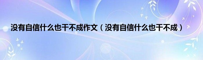 大家好,小问来为大家解答以上问题。没有自信什么也干不成作文,没有自信什么也干不成这个很多人还不知道,现在让我们一起来看看吧!