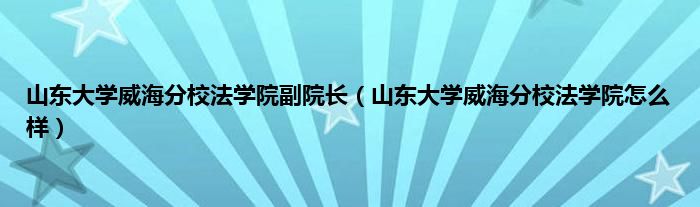 本文,山东大学威海分校法学院副院长,山东大学威海分校法学院怎么样到此就分享完毕,希望对大家有所帮助。