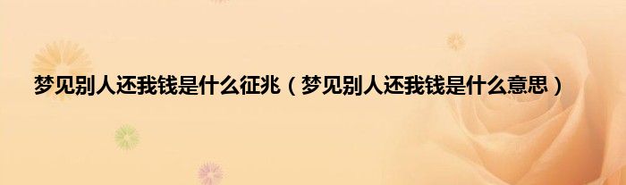 本文梦见别人还我钱是什么征兆,梦见别人还我钱是什么意思到此分享完毕,希望对大家有所帮助。