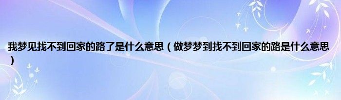 本文我梦见找不到回家的路了是什么意思,做梦梦到找不到回家的路是什么意思到此分享完毕,希望对大家有所帮助。