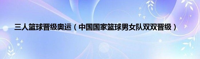大家好,综合小编来为大家讲解下。三人篮球晋级奥运,中国国家篮球男女队双双晋级这个很多人还不知道,现在让我们一起来看看吧!