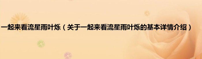 本文关于一起来看流星雨叶烁的基本详情介绍就讲解完毕,希望对大家有所帮助。