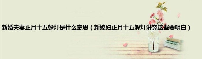 大家好,综合小编来为大家讲解下。新婚夫妻正月十五躲灯是什么意思,新媳妇正月十五躲灯讲究这些要明白这个很多人还不知道,现在让我们一起来看看吧!