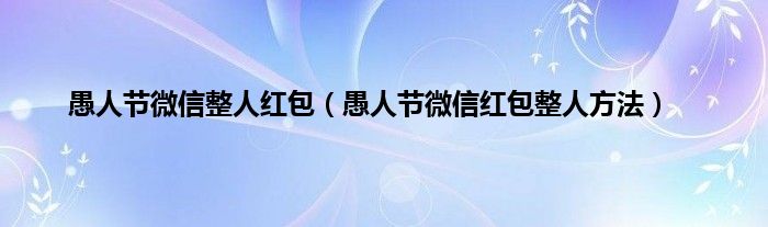 大家好,综合小编来为大家讲解下。愚人节微信整人红包,愚人节微信红包整人方法这个很多人还不知道,现在让我们一起来看看吧!