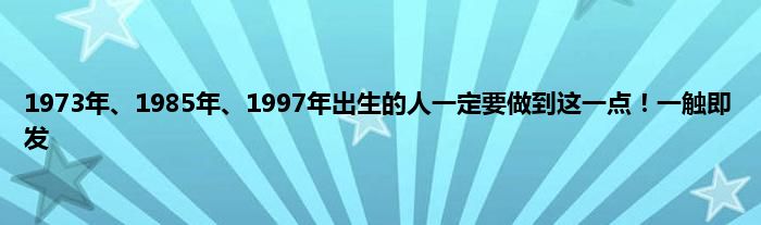 大家好,综合小编来为大家讲解下。1973年、1985年、1997年出生的人一定要做到这一点!一触即发这个很多人还不知道,现在让我们一起来看看吧!