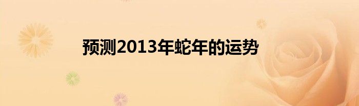 大家好,综合小编来为大家讲解下。预测2013年蛇年的运势这个很多人还不知道,现在让我们一起来看看吧!