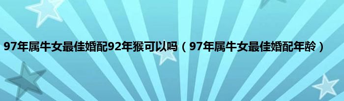 本文97年属牛女最佳婚配92年猴可以吗,97年属牛女最佳婚配年龄到此分享完毕,希望对大家有所帮助。
