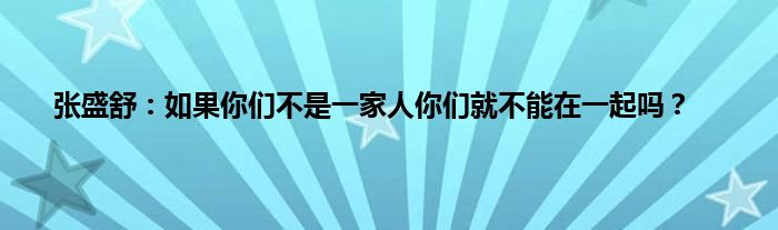 大家好,综合小编来为大家讲解下。张盛舒:如果你们不是一家人你们就不能在一起吗?这个很多人还不知道,现在让我们一起来看看吧!
