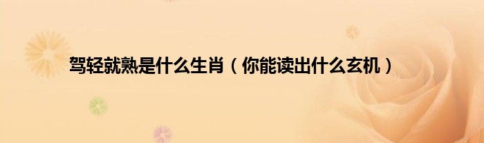 大家好,综合小编来为大家讲解下。驾轻就熟是什么生肖,你能读出什么玄机这个很多人还不知道,现在让我们一起来看看吧!
