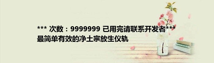 大家好,综合小编来为大家讲解下。*** 次数:9999999 已用完请联系开发者*** 最简单有效的净土宗放生仪轨这个很多人还不知道,现在让我们一起来看看吧!
