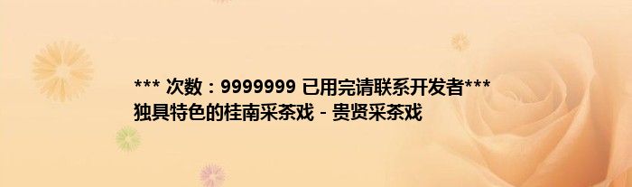 本文*** 次数:9999999 已用完请联系开发者*** 独具特色的桂南采茶戏-贵贤采茶戏到此分享完毕,希望对大家有所帮助。