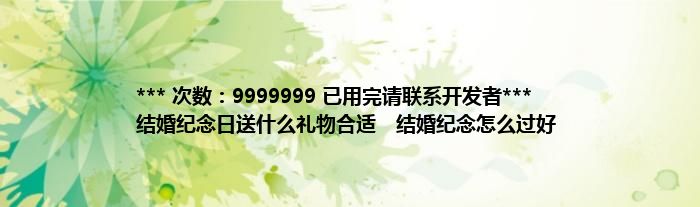大家好,综合小编来为大家讲解下。*** 次数:9999999 已用完请联系开发者*** 结婚纪念日送什么礼物合适 结婚纪念怎么过好这个很多人还不知道,现在让我们一起来看看吧!