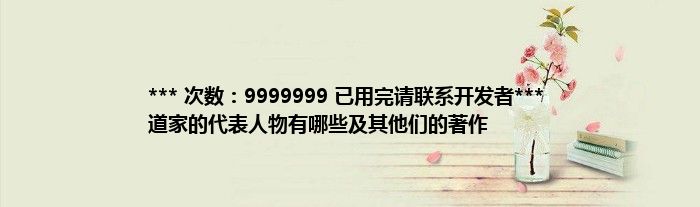 大家好,综合小编来为大家讲解下。*** 次数:9999999 已用完请联系开发者*** 道家的代表人物有哪些及其他们的著作这个很多人还不知道,现在让我们一起来看看吧!