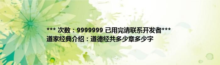 大家好,综合小编来为大家讲解下。*** 次数:9999999 已用完请联系开发者*** 道家经典介绍:道德经共多少章多少字这个很多人还不知道,现在让我们一起来看看吧!