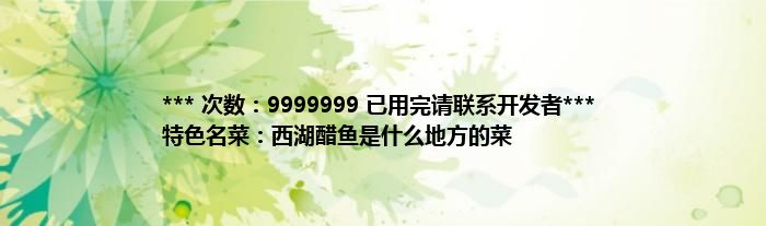 大家好,综合小编来为大家讲解下。*** 次数:9999999 已用完请联系开发者*** 特色名菜:西湖醋鱼是什么地方的菜这个很多人还不知道,现在让我们一起来看看吧!