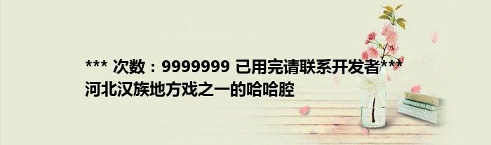 本文*** 次数:9999999 已用完请联系开发者*** 河北汉族地方戏之一的哈哈腔到此分享完毕,希望对大家有所帮助。