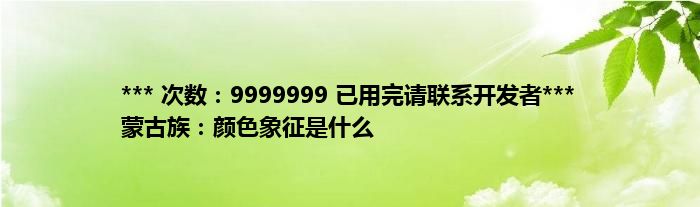 大家好,综合小编来为大家讲解下。*** 次数:9999999 已用完请联系开发者*** 蒙古族:颜色象征是什么这个很多人还不知道,现在让我们一起来看看吧!