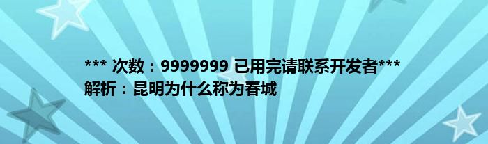 大家好,综合小编来为大家讲解下。*** 次数:9999999 已用完请联系开发者*** 解析:昆明为什么称为春城这个很多人还不知道,现在让我们一起来看看吧!