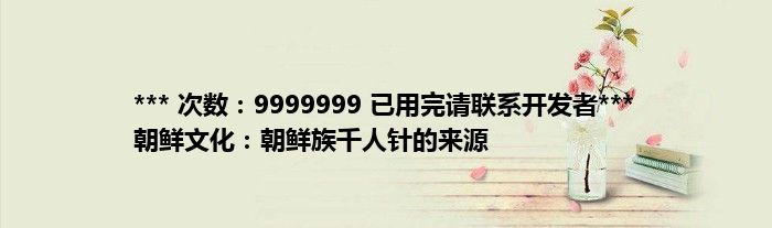 本文*** 次数:9999999 已用完请联系开发者*** 朝鲜文化:朝鲜族千人针的来源到此分享完毕,希望对大家有所帮助。