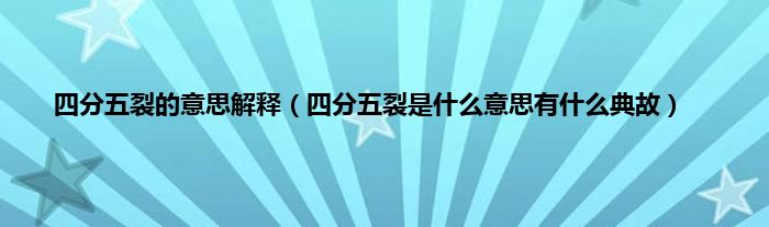 大家好,综合小编来为大家讲解下。四分五裂的意思解释,四分五裂是什么意思有什么典故这个很多人还不知道,现在让我们一起来看看吧!