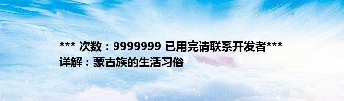 大家好,综合小编来为大家讲解下。*** 次数:9999999 已用完请联系开发者*** 详解:蒙古族的生活习俗这个很多人还不知道,现在让我们一起来看看吧!
