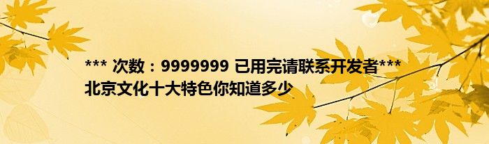 大家好,综合小编来为大家讲解下。*** 次数:9999999 已用完请联系开发者*** 北京文化十大特色你知道多少这个很多人还不知道,现在让我们一起来看看吧!