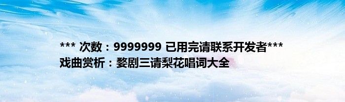 大家好,综合小编来为大家讲解下。*** 次数:9999999 已用完请联系开发者*** 戏曲赏析:婺剧三请梨花唱词大全这个很多人还不知道,现在让我们一起来看看吧!