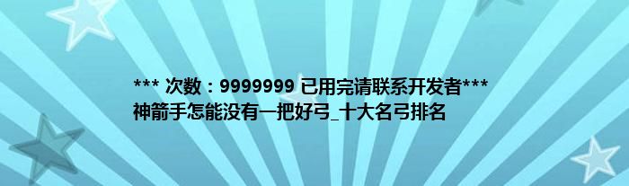 大家好,综合小编来为大家讲解下。*** 次数:9999999 已用完请联系开发者*** 神箭手怎能没有一把好弓_十大名弓排名这个很多人还不知道,现在让我们一起来看看吧!