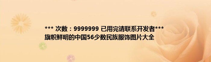 本文*** 次数:9999999 已用完请联系开发者*** 旗帜鲜明的中国56少数民族服饰图片大全到此分享完毕,希望对大家有所帮助。