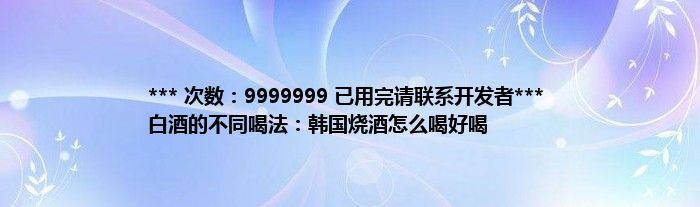 本文*** 次数:9999999 已用完请联系开发者*** 白酒的不同喝法:韩国烧酒怎么喝好喝到此分享完毕,希望对大家有所帮助。