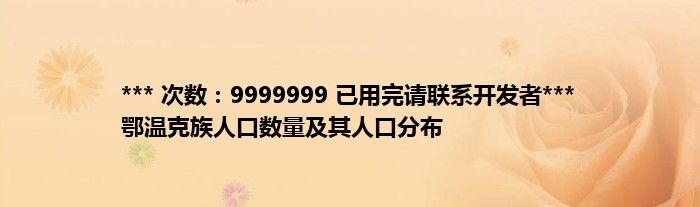 本文*** 次数:9999999 已用完请联系开发者*** 鄂温克族人口数量及其人口分布到此分享完毕,希望对大家有所帮助。