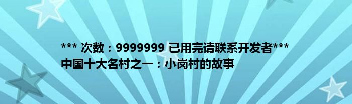 本文*** 次数:9999999 已用完请联系开发者*** 中国十大名村之一:小岗村的故事到此分享完毕,希望对大家有所帮助。
