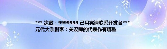 本文*** 次数:9999999 已用完请联系开发者*** 元代大杂剧家:关汉卿的代表作有哪些到此分享完毕,希望对大家有所帮助。
