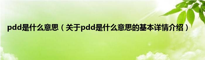 本文关于pdd是什么意思的基本详情介绍就讲解完毕,希望对大家有所帮助。