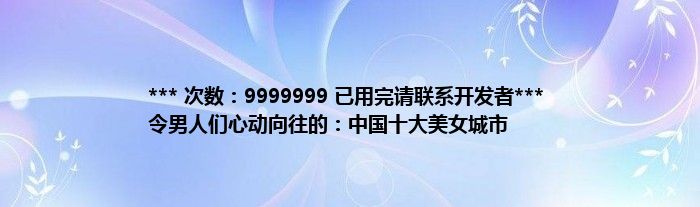 本文*** 次数:9999999 已用完请联系开发者*** 令男人们心动向往的:中国十大美女城市到此分享完毕,希望对大家有所帮助。