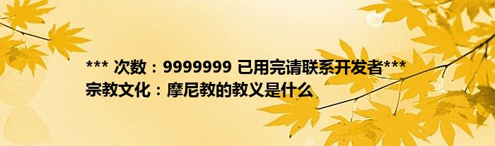 本文*** 次数:9999999 已用完请联系开发者*** 宗教文化:摩尼教的教义是什么到此分享完毕,希望对大家有所帮助。