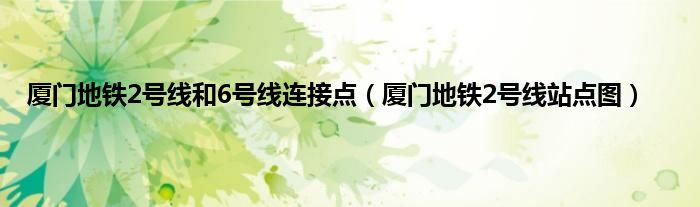 本文厦门地铁2号线和6号线连接点,厦门地铁2号线站点图到此分享完毕,希望对大家有所帮助。
